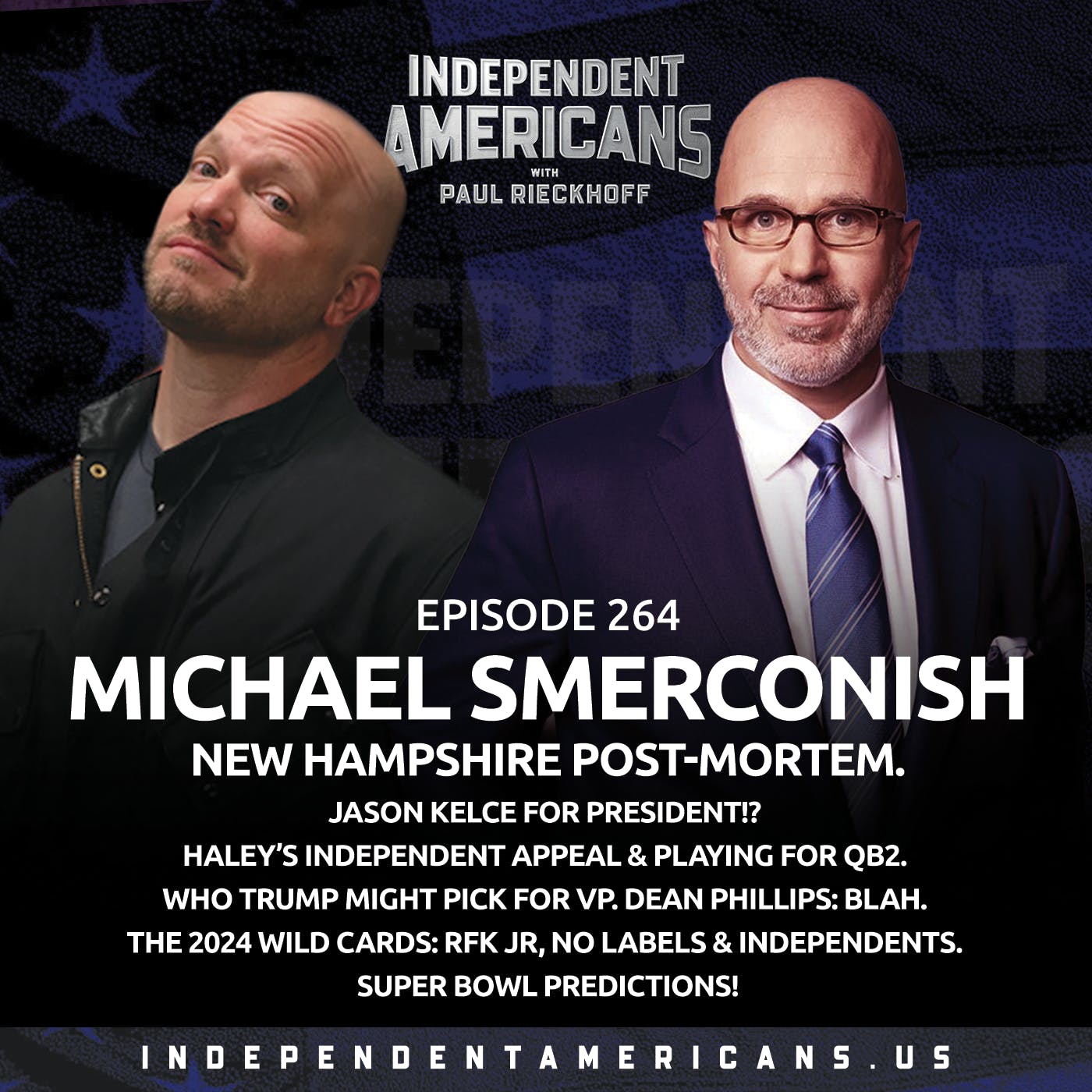Michael Smerconish (@Smerconish is back on IA to chop it up with Paul on all that. And, to rip into Jason Kelce’s shirtless emergence as America’s man of the people (and what it reveals–heh heh–about our politics in 2024), why more voters aren’t responding to Dean Phillips, why so many are responding to RFK Jr, who is on the bench for the Dems and Republicans, who can galvanize all this independent energy, and who’s gonna win the Super Bowl??? We’re digging into all of it in a fast and fun episode with your two favorite outspoken, bald and bearded, independent, white guys!
